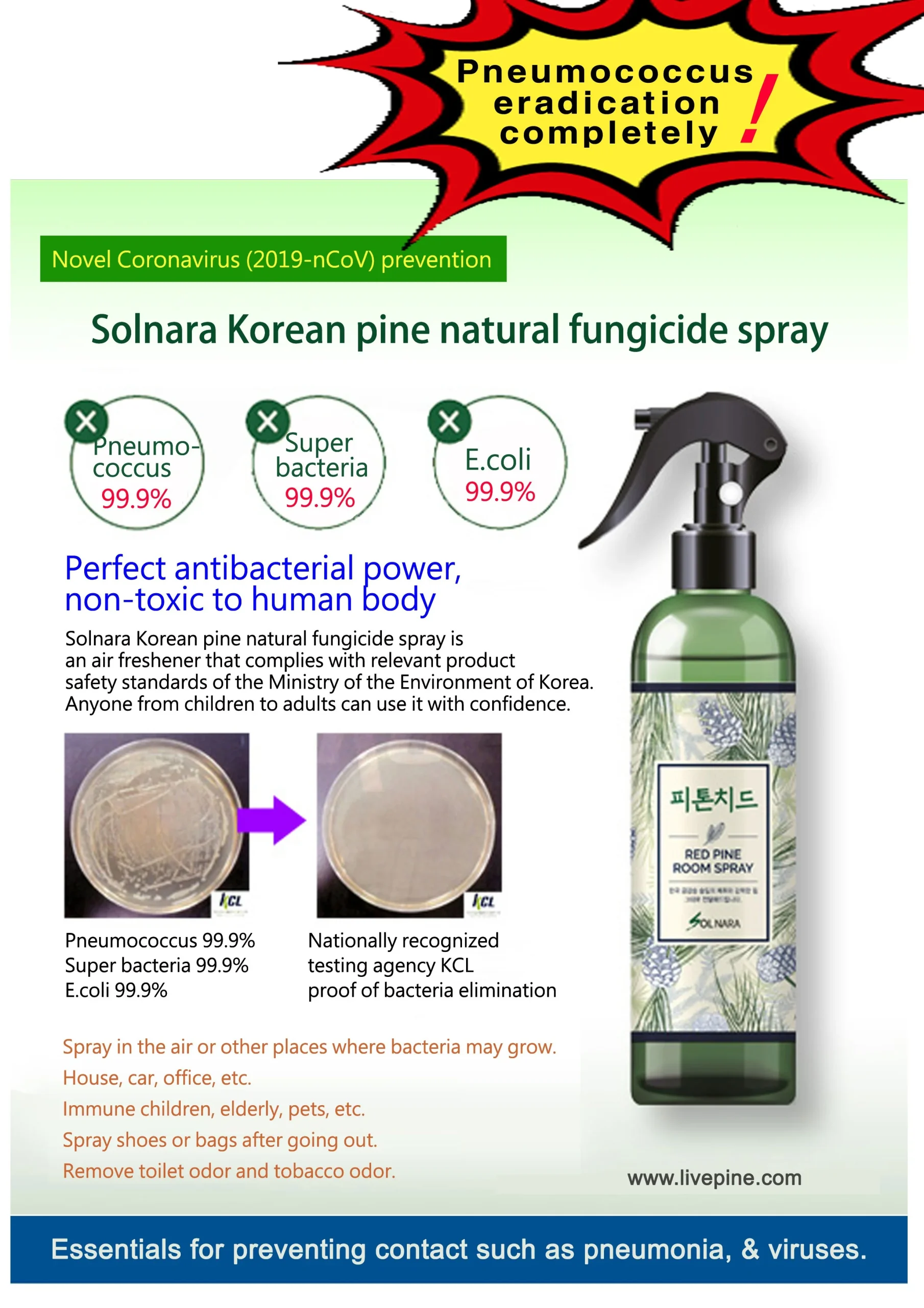 Discover the Red Pine Room Spray, a powerful natural fungicide derived from Korean pine. This 100ml spray is an essential addition to every household, offering a non-toxic, effective solution for maintaining a clean and fresh environment. Its dual functionality as an air freshener makes it a versatile tool in combating pneumococcus, super bacteria, and E. coli—all in one compact bottle.